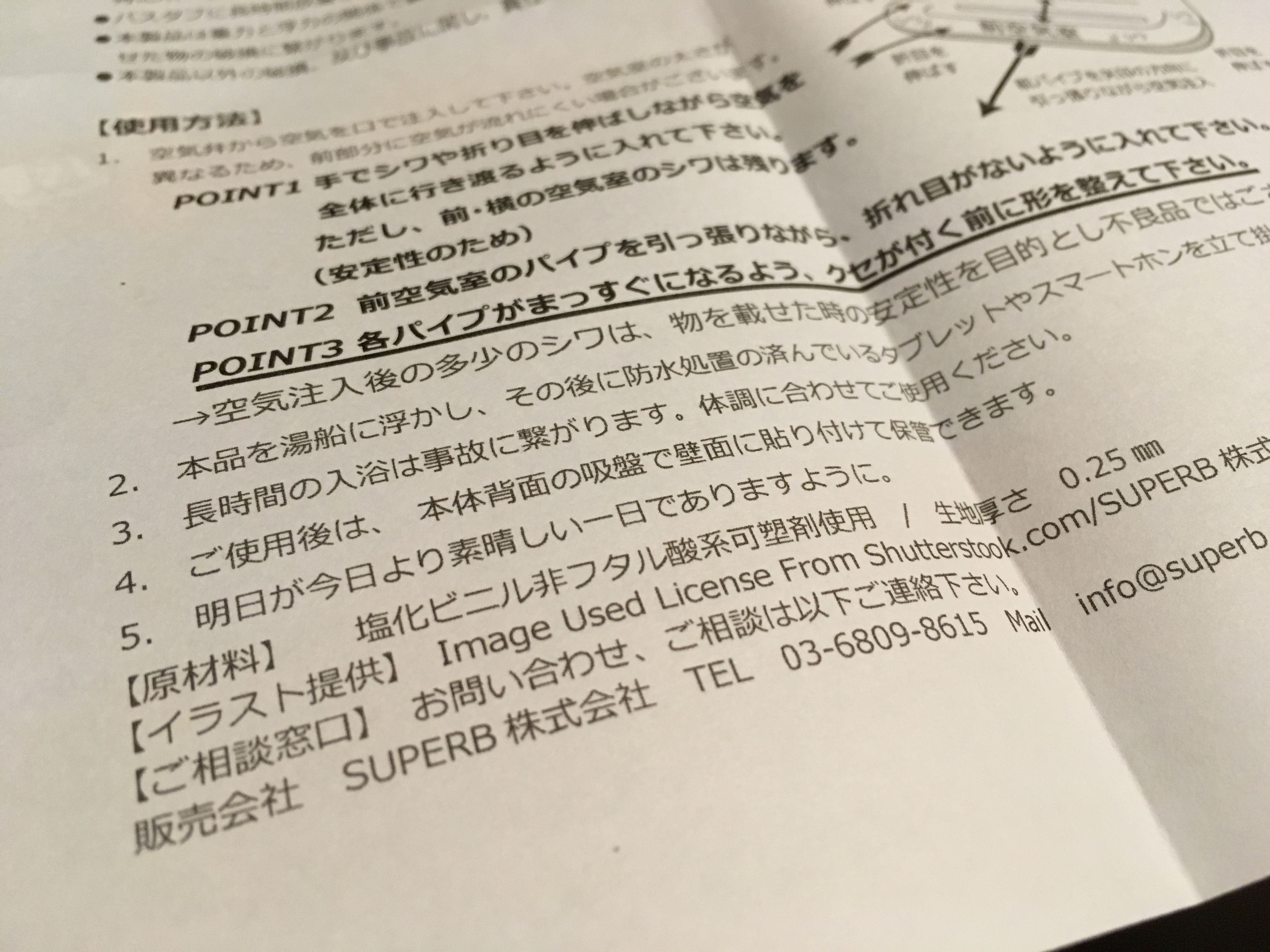 より低い目線で、お湯から肩を出さずに動画なんかを楽しめたらいいな、と思っていた私はつい衝動買いしてしまいました。(値段は2千円弱でした)