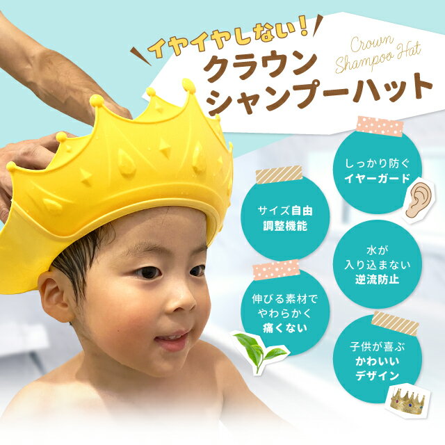 こちらはかわいいティアラデザインのシャンプーハット。①で紹介したハットと同じ水が後ろに流れる構造で、顔に水が落ちてくる心配がありません!色はイエロー、ピンク、ブルーの三色展開があります。