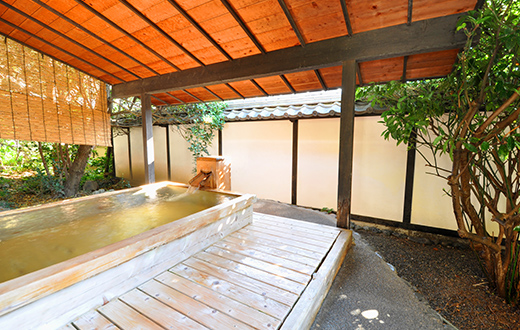 枇杷の湯では松本藩の御殿湯として400年の歴史を持つ浅間の湯が使われています。無色透明な弱アルカリ性の単純泉で、つるっとした気持ちいい入浴中の肌触りと、さっぱりした湯上がりが特徴です。