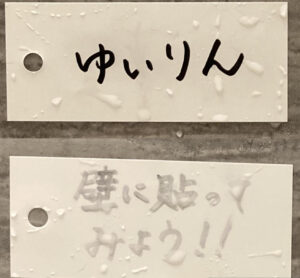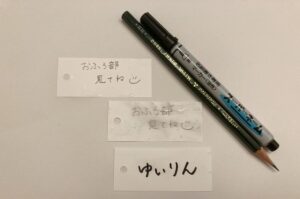 「油性ペンだから、水に良くない」当たり前だけど、書いてみたら、文字の色がどんどんと薄くなっていってしまった。悲しい…。書けるには、書けたのだけどね。(笑)