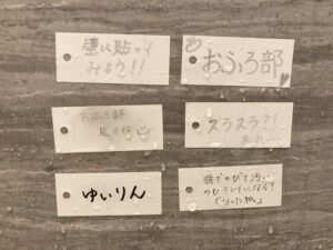 思いついたことを忘れる前に、メモっておきたいな~となりながらも、おふろを出るまで、頭で記憶をしながら、過ごしたことや、小さい頃、九九などのシートや国語のシートなどをおふろに貼って、覚えることなどをしていました。