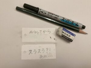 消すことができると書いてあったから、MONO消しゴムで、字を消してみたよ!!