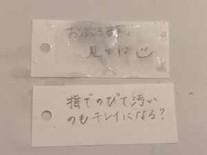 しかし・・・ 指でこすってしまうと、伸びてしまうから、書いた文字のところは、触れないようにしよう!