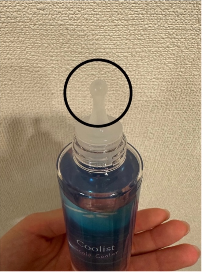 下の写真の〇の先端部分を直接頭皮に塗ります。