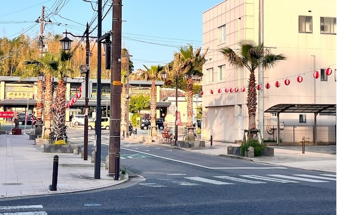 いわきはフラダンスのまちということもあり、温泉街では提灯やヤシの木が目立ちます。