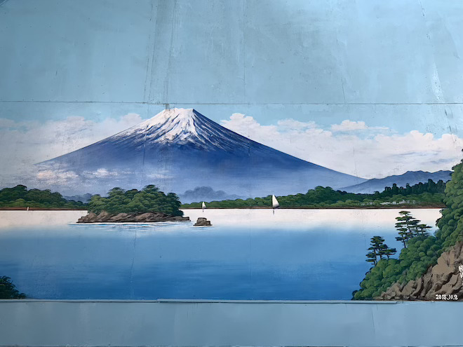 また天神湯には素敵な富士山の絵が書かれているのですが、なんとこの絵には「白」「黄色」「赤」「紺」の4色しか使われていないそうなんです…!様々な色味を混ぜ合わせ新しい色を作っていくという所に職人の技を感じました。