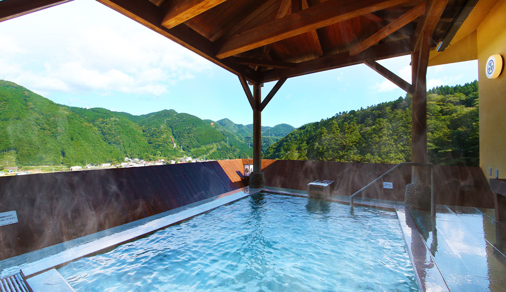 露天風呂では、風にふかれながらゆったりお湯に浸かって、まるで自然と一体化した気分。