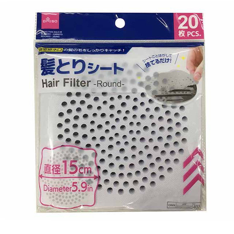「そもそも汚れる前に防ぎたい」という人には、【ダイソー 浴室排水口用髪取りシート 丸型(20枚入り)】がおすすめ。